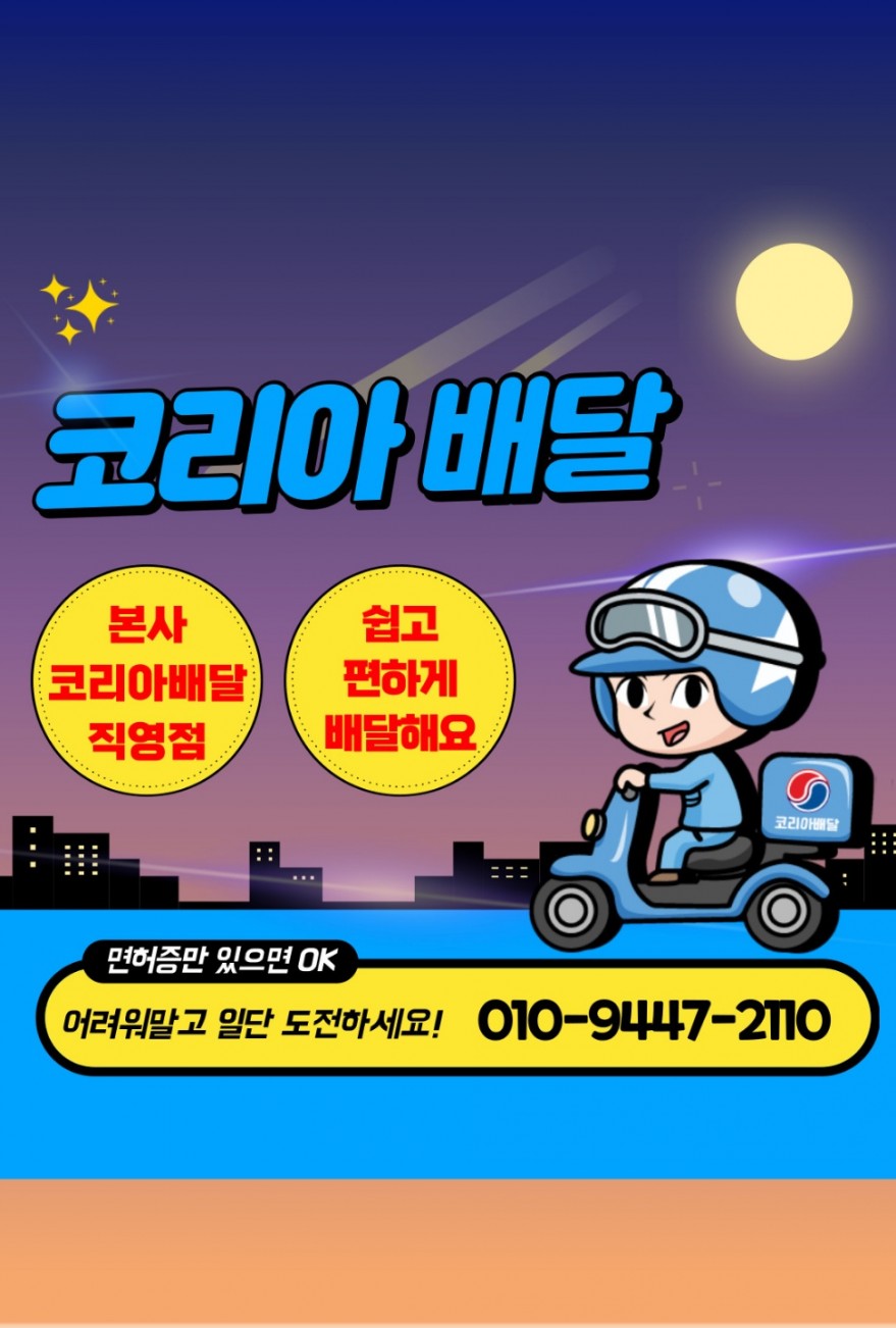 코리아배달연합 // 구제주,신제주 지역 // 기사(라이더)모집 공고