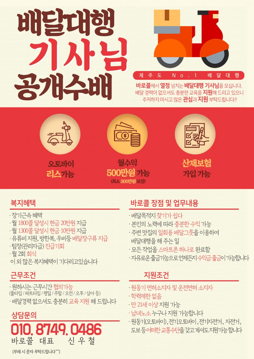 배달대행 업무는 결코 쉬운일은 아닙니다 하루이틀 하실분은 전화주지 마세요.