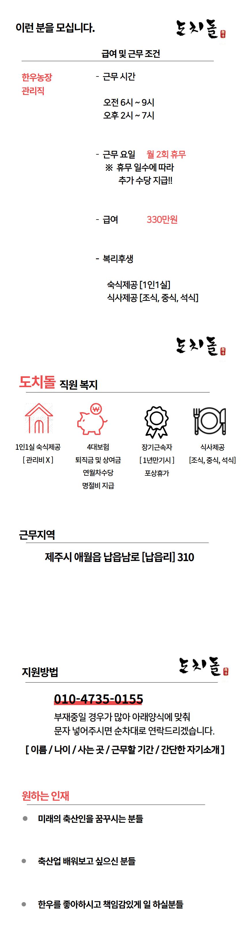 [1인1실/숙식제공]_한우농장관리직_모집 페이지 정보 작성자 pOOOOO5 작성일26-01-02 07:51 조회367회 연락처 010-4735-0155 급여 월급 : 330만원 관련링크 본문 . 주소 : 천덕로440-1 이전글 다음글 목록
