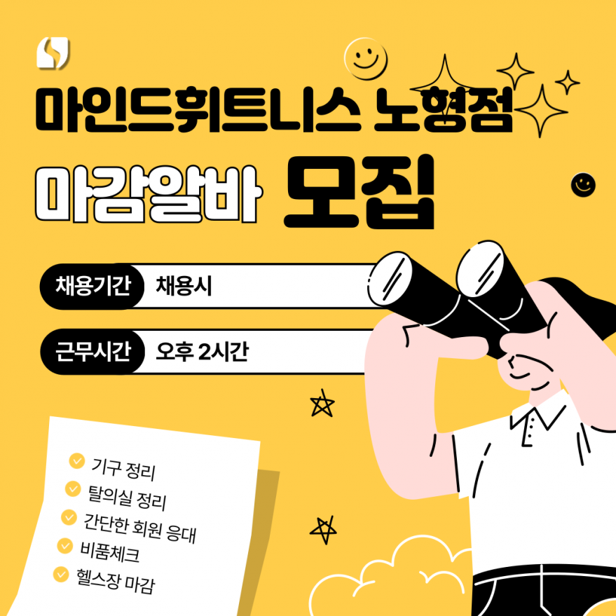 마인드 휘트니스 노형점 마감알바 모집!