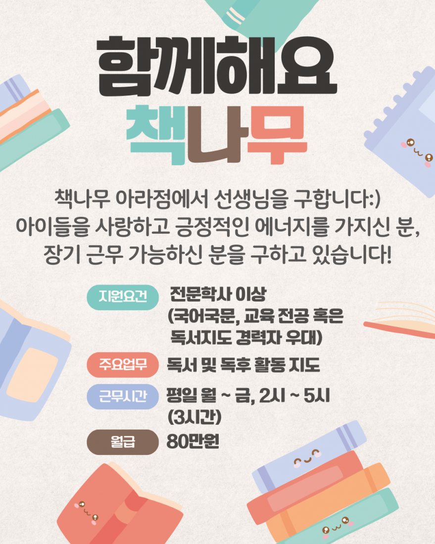 독서 및 독후활동 지도하실 선생님 구인합니다:)
