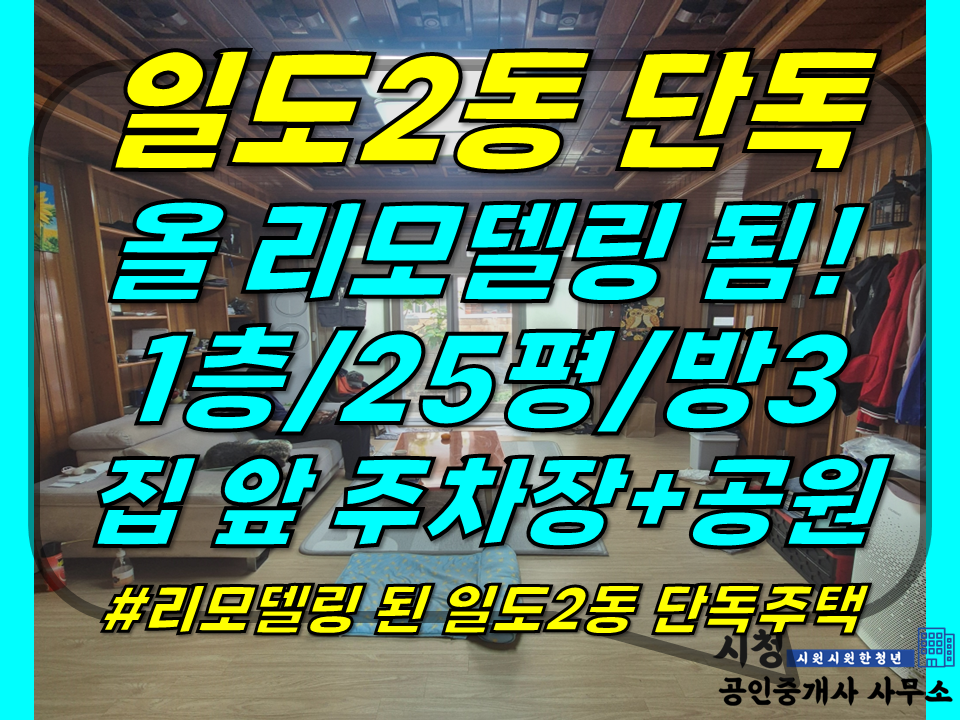[ 집 옆 주차장,공원+올 리모델링! 제주시 일도2동 단독주택 1층 매매/전세(주택26평/골목 안 집/방3+화2+옥상) ]
