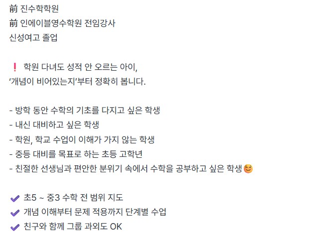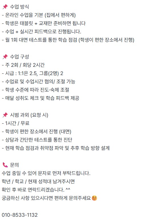 기타 | 중등수학전문과외(시범과외무료) 페이지 정보 작성자 hOOOOOOOl 작성일26-01-04 18:16 조회658회 연락처 010-8533-1132 관련링크 본문 . 이전글 다음글 목록