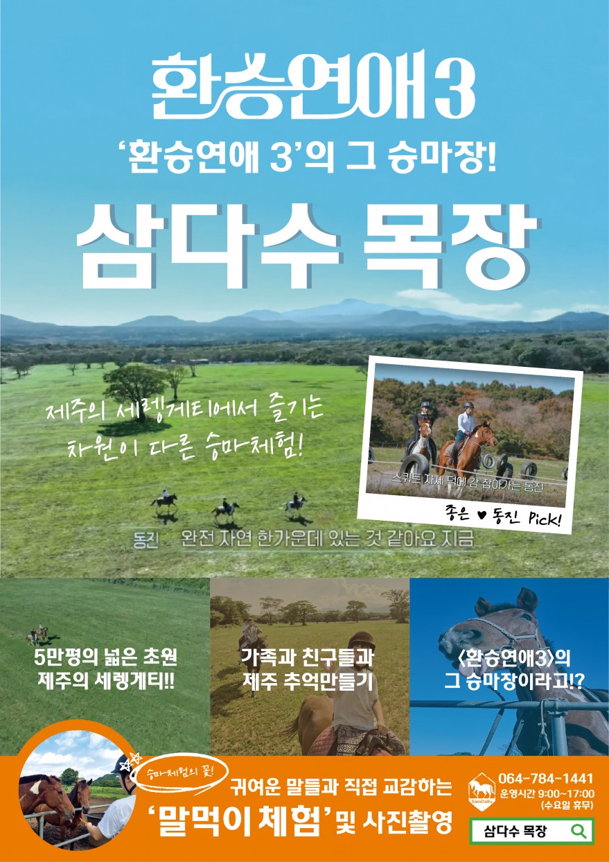 삼다수 목장에서 승마 그룹레슨 할인 이벤트를 진행합니다!!! 페이지 정보 작성자 dOOOOOO7 작성일24-11-06 11:16 조회6,441회 연락처 010-6676-1446 관련링크 본문 <<첫 이벤트 참가 감사합니다!!!>>본 이벤트는 정원 초과로 마감합니다. 많은 관심 감사합니다 다음 이벤트로 기대해주세요~ 삼다수 목장에서 첫 승마 그룹레슨을 오픈하였습니다!! 선착순으로 그룹레슨 오픈 이벤트를 참여하실 수 있습니다.가족과 함께 혹은 친구, 연인과 함께 멋진 경치를 보며 승마를 즐겨보세요!!❤*전화로 문의 주시면 자세히 안내 드립니다* 이전글 다음글 목록