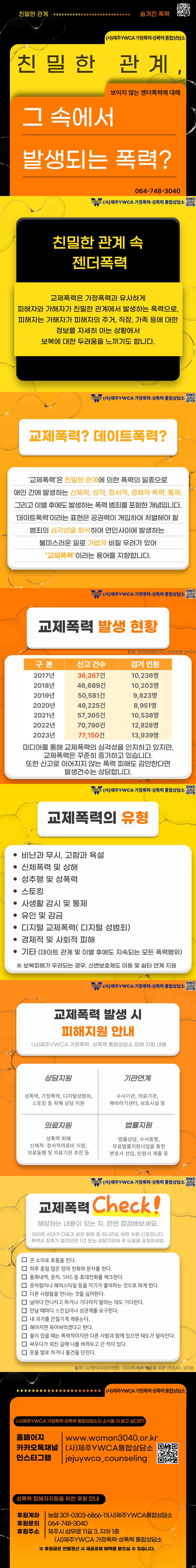 또한 친밀한 관계에서 발생하는 만큼 지속적이고 반복적으로 발생하는 가능성과 재범률이 높습니다. 피해자는 자신이 교제폭력 피해를 입고 있다는 인식을 잘 못하는 경우도 많습니다.